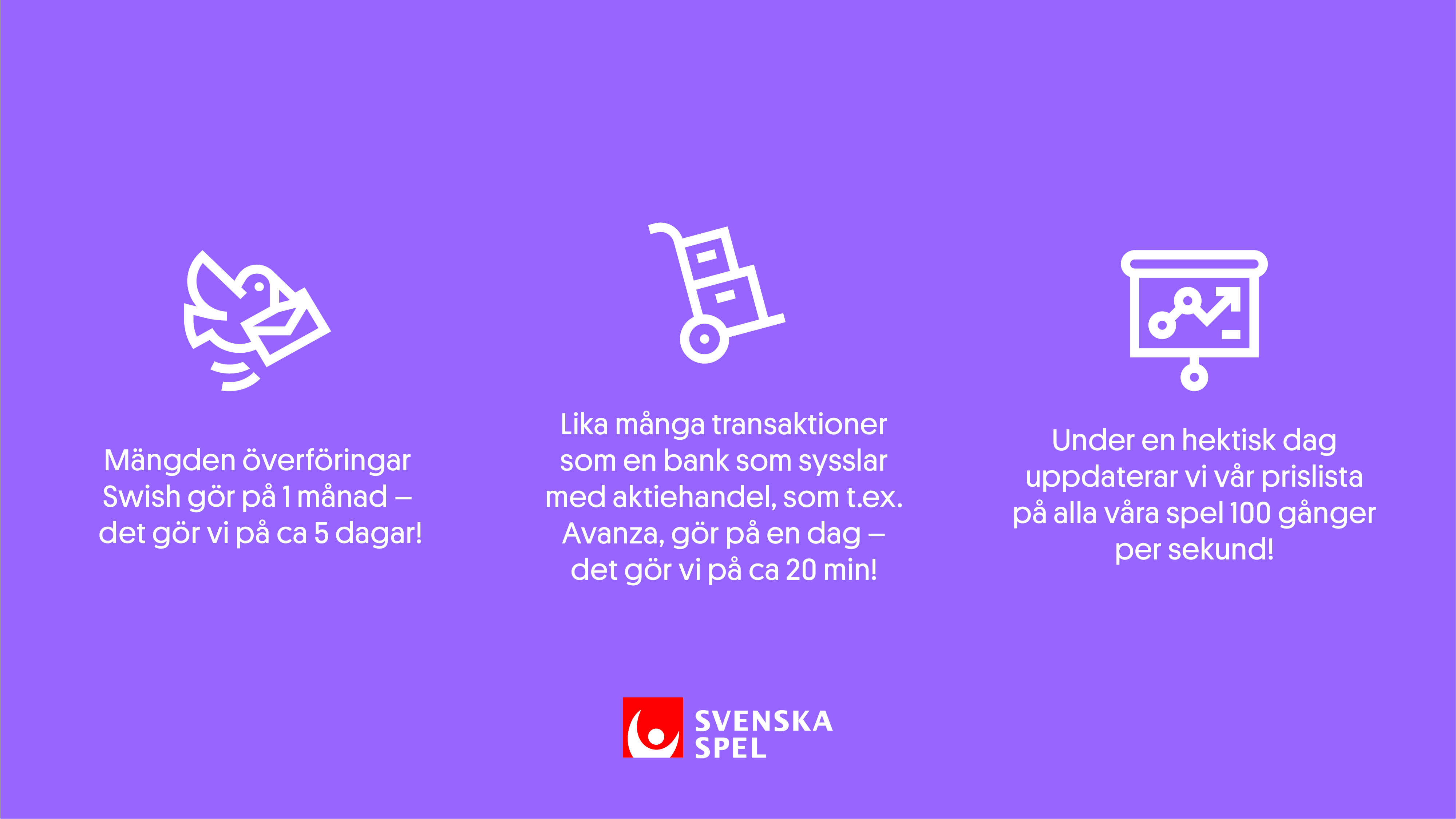 Här är några siffror på vad som händer varje dag hos oss på Svenska Spel tack vare vårt tech-arbete: