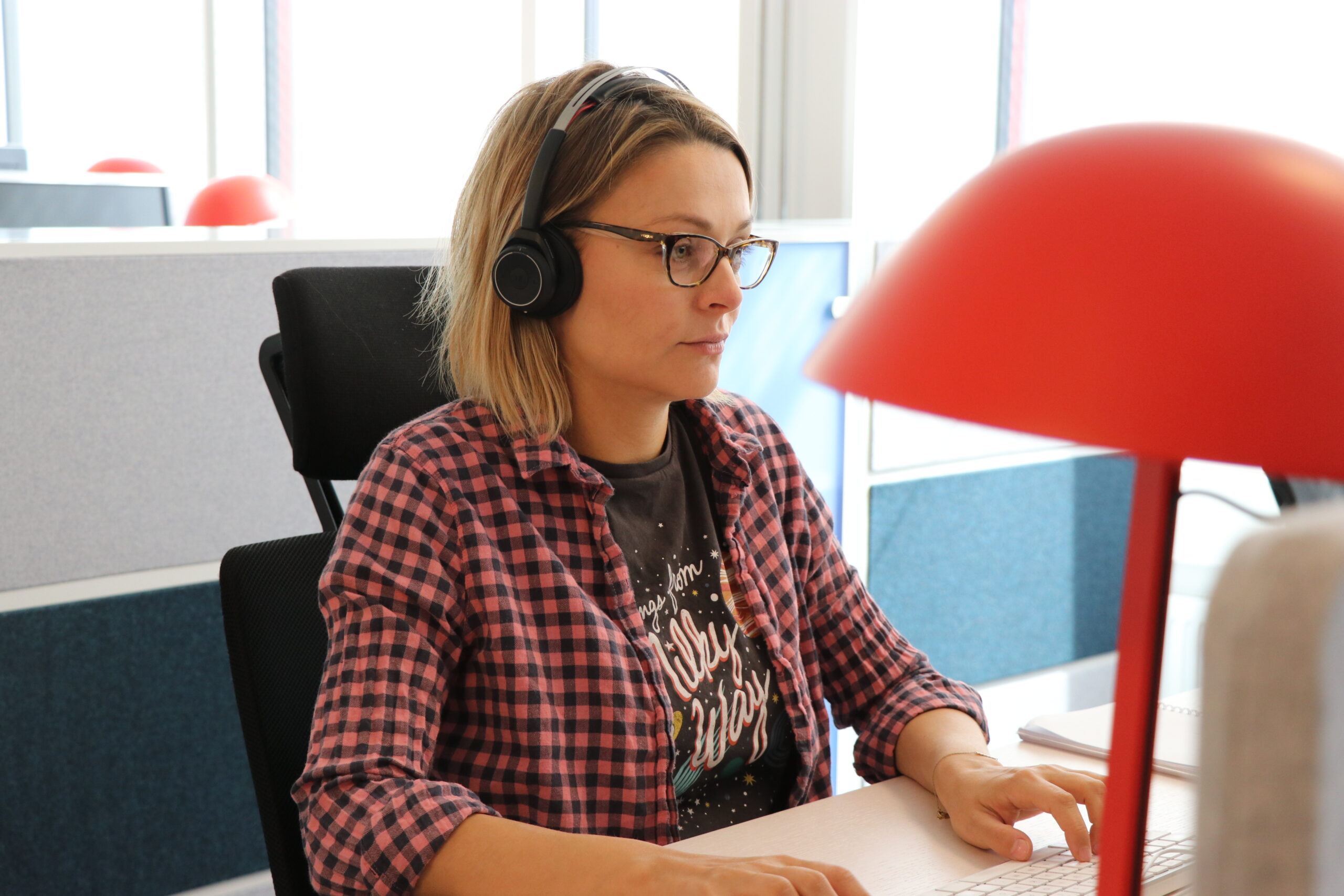 Vi inleder dagen med morgonmöte, ett så kallat daily standup, för att redogöra status på aktuella arbetsuppgifter och jobbar sedan utefter en prioriterad lista, antingen enskilt eller i par/grupp.